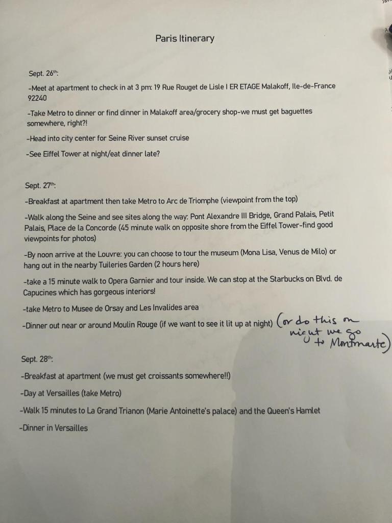 Once I’ve read through the books and jotted down any notes, I like to insert the info into my google doc and rearrange things if needed, often adding more information to sights/places of interest, attractions, and our list of top must see/do activities. Then I will head back to google maps to revisit each location and best configure a timeline that allows for seeing multiple sights each day based on proximity. During this process I will verify opening times/days of each location & sight to confirm the best order to arrange them to best maximize our time & ensure we’re able to see as many locations/activities as possible each day. Then I order tickets for the sights that require pre-booked tickets. When everything is arranged and organized I use google maps to create a step by step (location by location) map and add it to my google doc. Lastly I will go through to confirm everything is in order and will print a copy to bring along on the trip & share a digital copy with everyone who will be joining us on the trip.