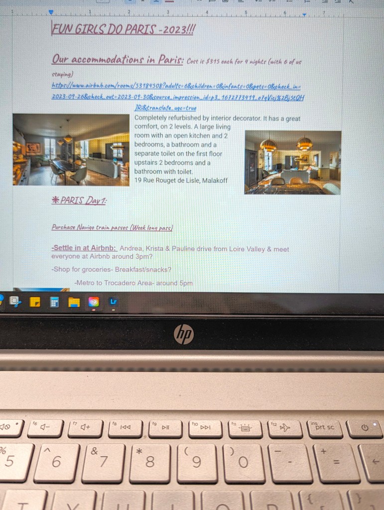 After you’ve locked in your main mode of travel & accomodations, I recommend reaching for those lists you compiled, opening a Google Doc and creating a document named after your trip and suggest storing all the pertinent trip details there. When I’m travel planning I might have as many as 10 google docs for an upcoming trip, depending on where I’m going, who I’m traveling with and wether or not I’ve been to the area/country before. Having everything in an easy to access location (I like docs because I can access on both my laptop & phone) and I love that I can adjust the lists/docs, print them and share them with anyone else who is going on the trip ) makes adjustments & referring to them a cinch. I also use google sheets to keep tabs on expenditures prior to the trip (for example: tickets I purchase such as flights, train/bus fares, timed entry tickets for activities/attractions, rental car fees, travel essentials I might purchase specifically for use on the trip, accommodation costs, etc) as well as a guestimated total/budget and in another column I’ll come back and record actual totals later on. This not only helps me keep costs down and on track but it helps me to figure out a projected total for future trips & when giving travel recommendations for others who want to copy my itinerary in the fututre.