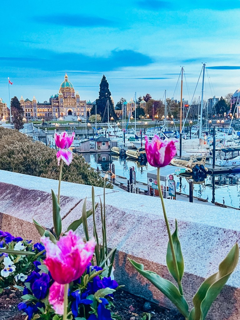 Once you arrive there are numerous options of activities, including walking along the waterfront, browsing the shops & restauants on Government Street, taking a free tour of the Parliament building, and so much more. I recommend heading to your accomodations first to drop off your luggage and give you a chance to freshen up before heading out to sightsee. While I was in Victoria in April of 2024 Airbnb was still an option for accommodations, however things have changed as of May 1st, 2024. Laws have changed and now require many Airbnb/VRBO and other vacation rentals to require longer lengths of stay, making them only available to those who plan to rent for at least 30 days. That said, for those who prefer to live like a local there are many Airbnb/VRBO rentals available. When I travel my preference is to blend with the locals and try to acclimate myself with the location as much as possible and the best way to do that (IMO) is to stay in a vacation rental. Our condo in Victoria provided us with a secure location to park our car, placed us within easy walking distance of everything in the heart of the city and just a short drive to famous sites like Butchart Gardens and gave us magnificent views from every room & out on the balcony. Each evening we marveled at the incredible sunset views or the city lights while we enjoyed a nice cuppa tea and relaxed. It was so helpful to be right in the heart of the city, within a short 10-15 minute walk we could be right along the waterfront, surrounded by great shops & a handful of restaurants to pick from and quickly reach most attractions. Some of the best locations are well known but you’ll also find a few hidden gems & not to miss locations in the list below.