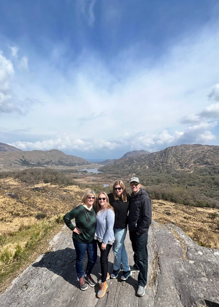 After our traipse through the woods and memorable walk to Torq waterfall we drove towards the scenic viewpoint called Ladies View. Named after Queen Victoria’s tour of Ireland and how taken her Ladies maids were with the stunning view. There is a cleft on a rock ledge where you’re able to stand and look out at the vast landscape spread out before you. It was quite the change of scenery from the lush forests we had just visited less than an hours drive away. We were all quite blown away by the incredible scenic views, especially of the mountains off in the distance and the beautiful terrain that sprawled out across the horizon. One of the most surpising things about Ireland is how quickly and drastically the landscape can change in what feels like mere moments. It never ceased to amaze us as we drove across mountains, along the rugged sea cliffs and down twisty, winding country roads. All apart of the allure and appeal of the magical island of Ireland. We never tired of the adventure, the hunt for the next surprise waiting to be discovered around every corner.