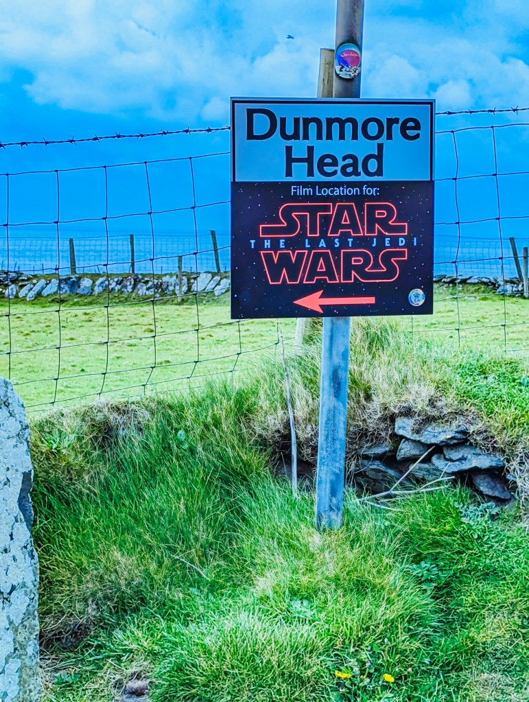 From there we drove around 2 hours to reach the coastal town of Dingle and to drive a portion of the Slea Head Loop. We arrived in Dingle around 4pm and made it to our first stop about 15 minutes later. The 2,000 year old Beehive Huts that inspired Star Wars to create a similar looking hut (where Luke had been living on the island) seen in “The Force Awakens & The Last Jedi” films. From the Beehive Huts views of the Blasquet islands & the Island of Skellig Michael can be seen, the location used in Star Wars for scenes with Luke & Rae in “The Force Awakens and The Last Jedi”. The path up to the huts follows a rockwall that overlooks the Atlantic Ocean and gently rolling hills covered in green grass and lots of sheep grazing nearby.