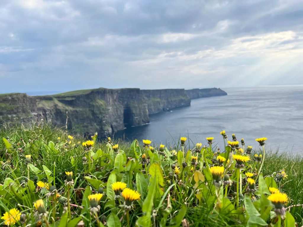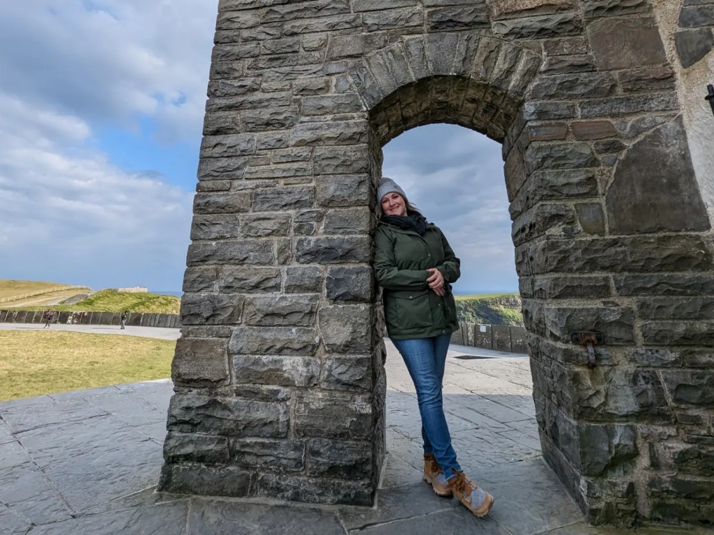 Cliffs of Moher live up to the hype and fame of their name. They seriously are magnificent, towering rugged cliffs that appear to stretch as far as your eye can see until they’re met by the crashing surf of the Atlantic Ocean. Puffins are known to frequent the area and can often be seen circling the ledges or flying alongside a flock of seagulls. My first impression of the famed cliffs were that they truly are impressive, massive and majestic. They tower over 700 feet above the Atlantic and provide an ethereal feel that seems to cement the awareness that you are indeed in Ireland. I could hardly believe that I was standing on the cliffs overlooking the sea. After years of scouring travel blogs, books and countless hours of research, the first sight of the cliffs felt like I had finally had my first truly authentic Irish experience. It was a whole vibe. A moment of pure bliss passed over me as I stood gazeing out into the deep blue of the ocean. Sunbeams streamed through the clouds casting brilliant rays of light and beautiful serene panoramic views stretched out before me. Gulls and other seabirds circled over head and the wind tugged at the tassle/pouff on of my beanie…nearly pulling it off my head! Haha. It truly is an inspirational view, one that stirs a longing to explore & serves as a reminder that this is what dreams are made of! That amazing moment will forever be firmly planted in my memories as one of the most magical I’ve ever experienced.