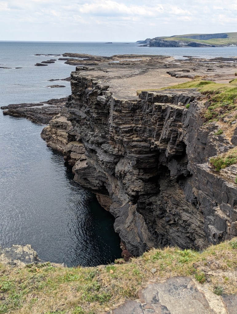 Our arrival at the Kilkee Cliffs happened to fall in the middle of the afternoon, with the sun shining high overhead and only a small handful of people at the cliffs besides our party. It was picture perfect and we couldn’t have asked for better weather while we walked along the stunning coastal walk. Everywhere we looked we were met with spectacular views of the coastline, the deep turquoise and cerulean blue hues of the Atlantic Ocean contrasting against the rugged cliffs was mesmerizing. Since we had plenty of time we opted to do a version of the long linear walk along the cliffs following a combo of the cliff path and a country road. Thick spongy grass covered several areas along the cliffs and reminded me of walking across the springy floor at my gymnastics studio (I did gymnastics for 2 1/2 years while I was in highschool) or how it feels to walk on soft, squishy, extra padded yoga mats (or something similar..). It was very weird to walk on and I would caution anyone heading to the cliffs to pay attention to the changing terrain especially if standing/walking anywhere near an edge. *Tips: It can be quite difficult to judge the density or stability of these areas at times; for your safety please exercise caution whenever near the edge of these cliffs! The weather can change rapidly in Ireland, especially along the coast. So, I highly recommend planning on layers (one being water proof!) and a beanie, gloves and scarf if you’ll be visiting in the Fall, Winter & Spring. I also suggest waterproof shoes (nice ot keep feet warm & dry) that have good traction to help you keep your footing while walking along cliffs or on rugged terrain. *We were fortunate to have mostly clear/dry days, but Ireland is known for rapid changing weather so it’s good to be prepared. You may end up having all 4 seasons in one day and those can change in the matter of minutes, cycling through several in less than 30 minutes haha. So it’s best to be prepared & aware of your surroundings.