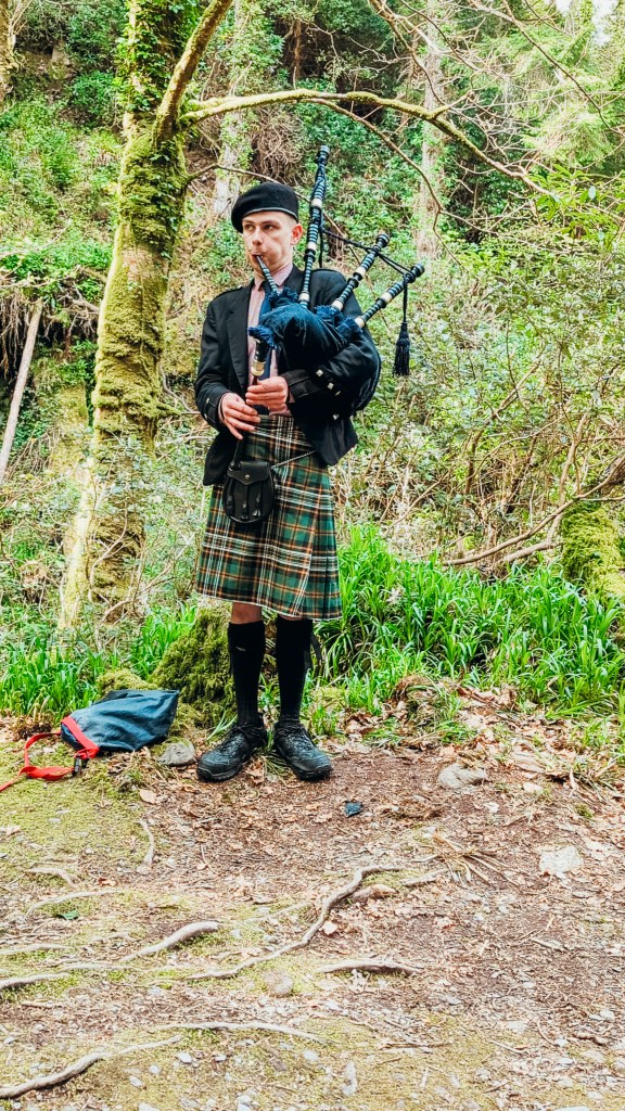 One of the most magical moments of the day came when we randomly happened upon a bagpiper playing a traditional Irish tune while we were visiting Torq waterfall. Literally a pinch me moment when we spotted the man dressed in a kilt and heard the first notes of his bagpipes serenading us while we walked towards the falls. It was a real life fairytale moment. Could it have been anymore idyllic?? (Said in Chandler Bing’s voice of course ;))There is something very unique about the sound of bagpipes, especially while surrounded by an Irish treasure like the beautiful tumbling waters of Torq Waterfall. The melodic notes washed over us as we sat at the base of the waterfall and somehow made the moment even more memorable. It truly felt like a scene in a storybook instead of real life. One that we still can’t quite believe because it was so surreal in the moment yet it will always remain a special memory of this day. One I’ll never forget.