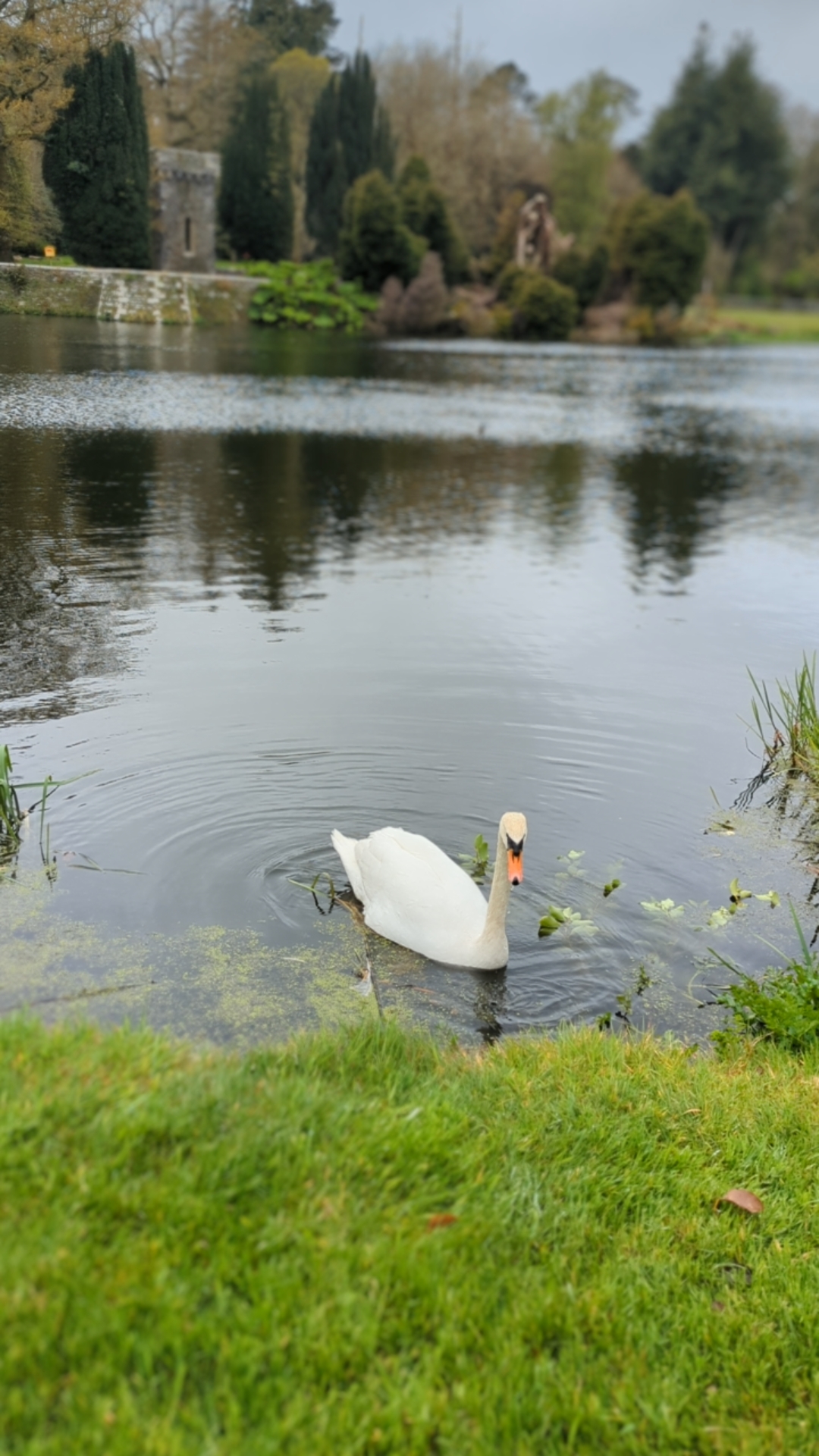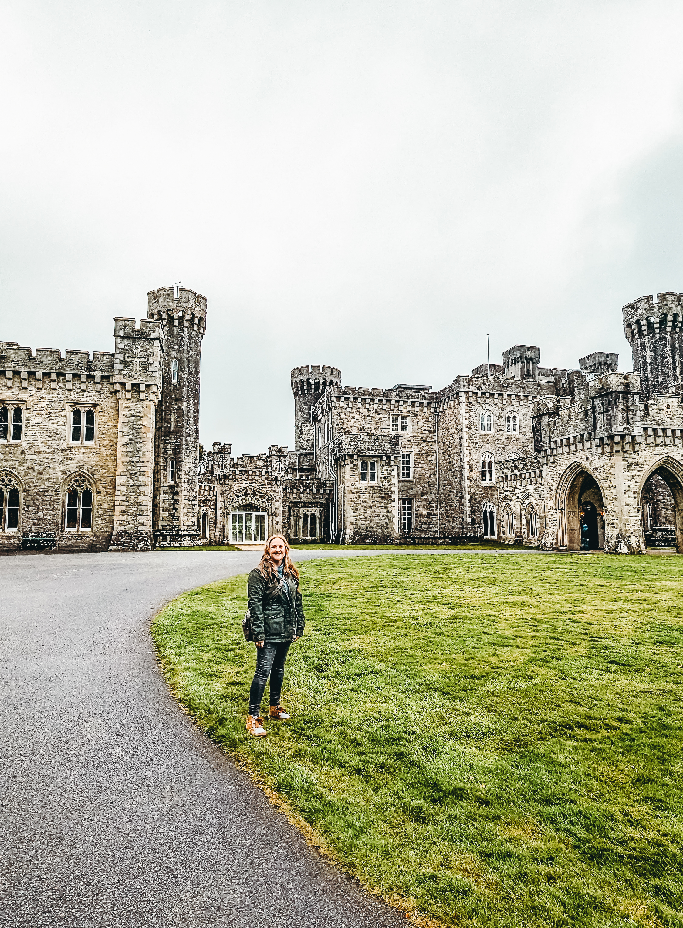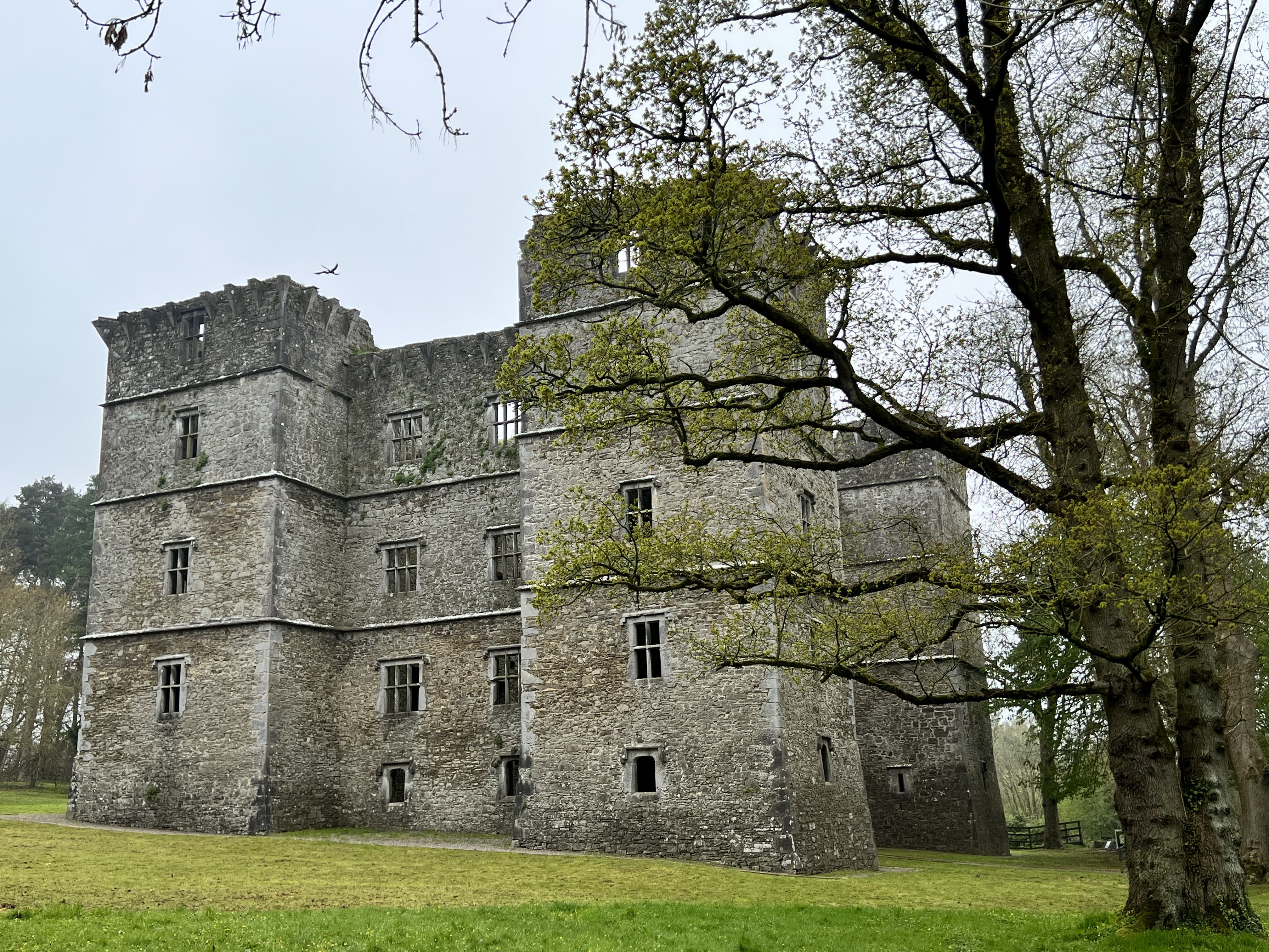Foggy and overcast skies greeted us when we woke to prepare for a busy day. I sat in the sunroom while I sipped a cup of Lyon’s Irish blend tea while I quickly ate my bowl of oatmeal/porridge. Sunlight peered through the grey and warmed the cosy room while I waited for everyone else. Then we hopped into the rental car and made the hour + drive south towards Johnstown Castle just outside of Wexford. Our tickets provided a guided tour and entrance to museum exhibits and access to walk the grounds while we waited for our tour time. Elegant swans glided across the pond and beautiful peacocks greeted us on our walk along the trail between the castle and gardens.