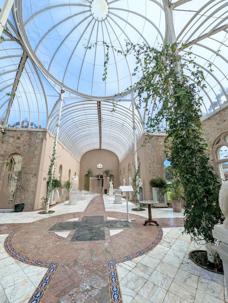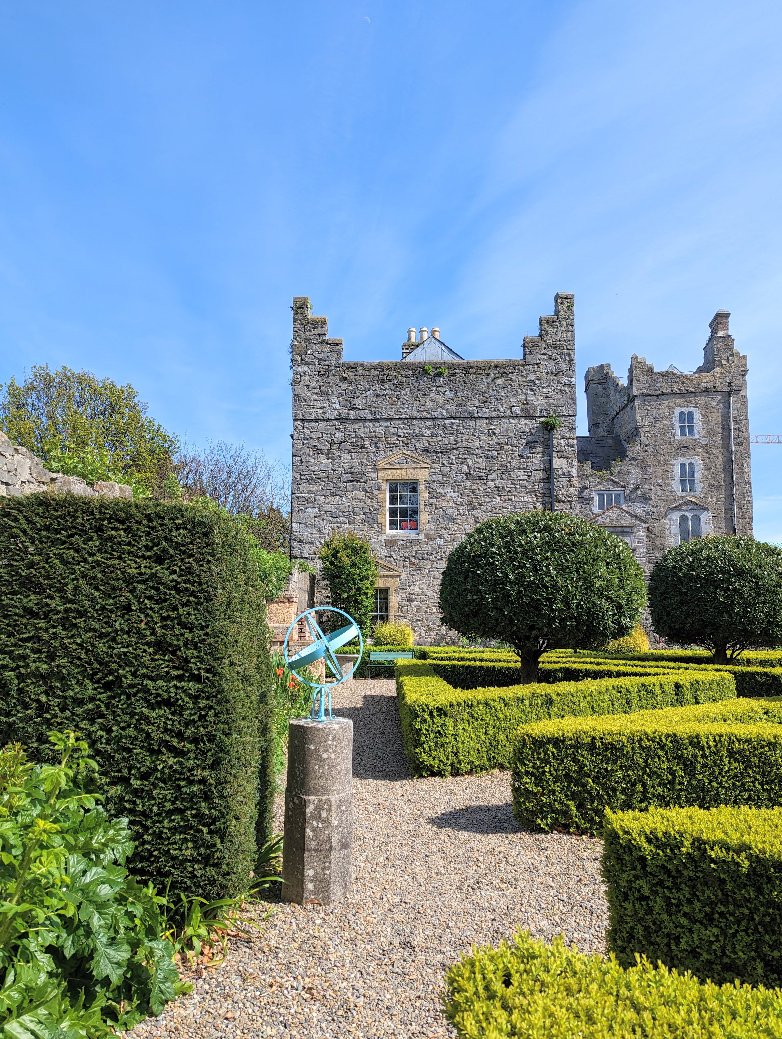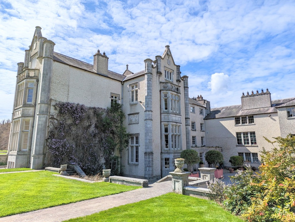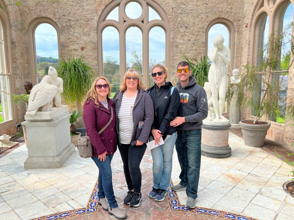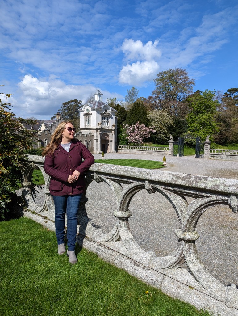 Day 6: We were graced with a gloriously bright and sunny morning when I awoke and looked out the little window from my bedroom. With the clear day there was a lovely view out to the sea and I could see for miles. For breakfast we drove to the little sea town of Wicklow and stopped at a cute shop called Vital Cafe for some delicious fresh fruit smoothies & breakfast burrito/wraps before driving north to Kilruddery House and gardens. If you’ve recently watched the film “Irish Wish” on Netflix you’ll recognize the house (the tour guide was excited to tell us that it would be used for filming amovie on Netflix shortly after our visit. However she wasn’t at liberty to mention which one at the time. It was fun to watch the film recently and see so many locations in the house & across Ireland that we had been to). It’s also featured in the Tudors, Angela’s Ashes and Far & Away. We had a private tour of the home with a knowledgeable docent. Our tour was 45 minutes and consisted of the main floor entry, famous staircase seen in multiple films, the dining and main living spaces as well as the library and the orangery. The home has been owned by the same family since 1618 and currently has 3 generations of the family residing there. Interior photos were not allowed except in the orangery, the rooms are still used by the family daily and thus photos are prohibited. On the grounds are lovely gardens, a cafe, bio-diverse farm, picnicing areas, fairy garden, childrens playhouse area and over 800 acres of spralling land to explore.