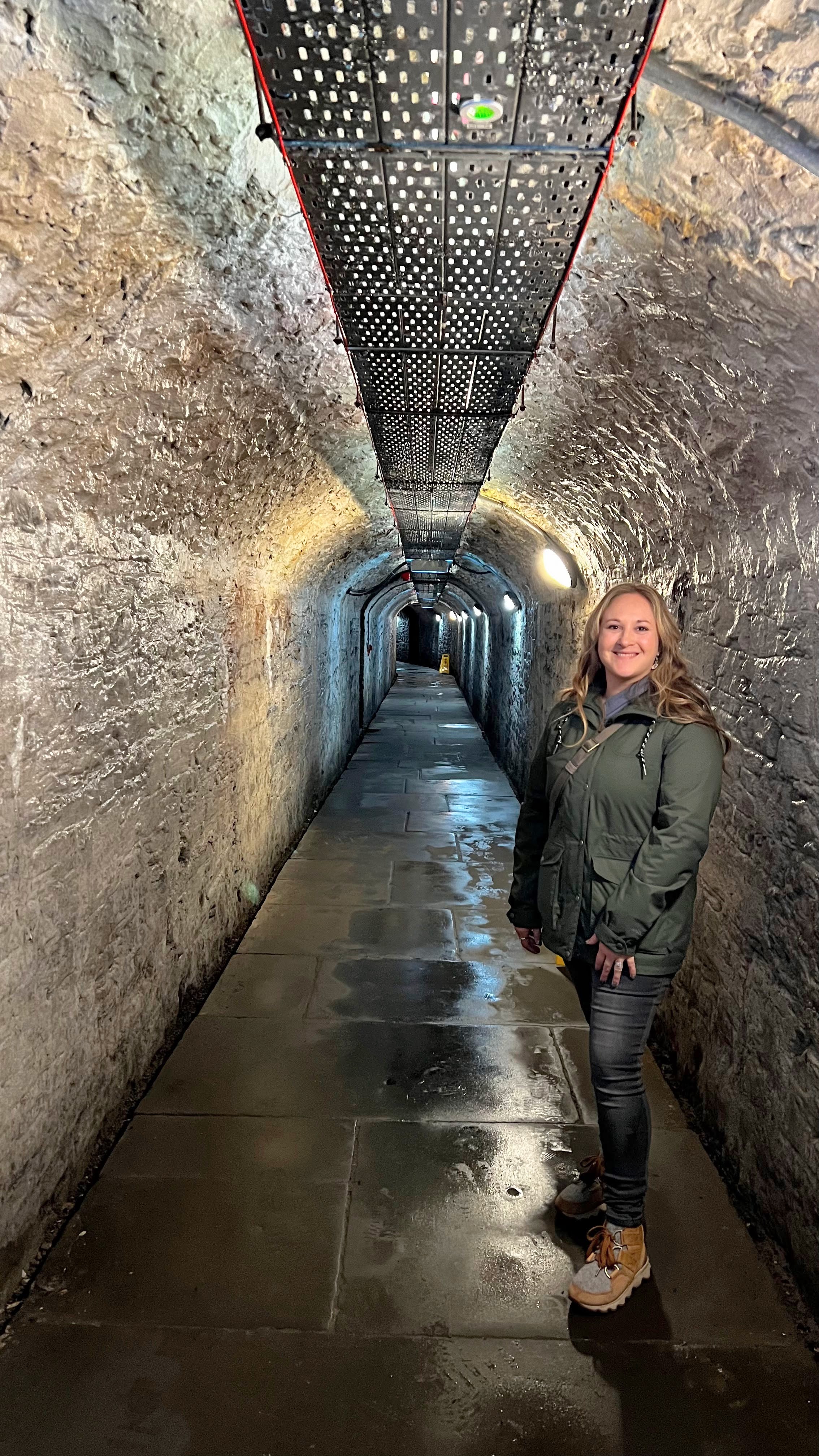 During our tour we learned that Johnstown Castle underwent renovations several times and was once used as a military school. The grand staircase was removed to accommodate the students who used the upstairs bedrooms as dormatories. It was re-designed in a Neo Gothic style in the 1800’s. Hannah, our tour guide was hilarious and very engaging. She told some interesting insights and tales of the families who lived at Johnstown, all the drama and deaths of many of the famliy members. Her stories were very entertaining! My favorite rooms were the secret library accessed through a hidden jib door and the kitchens. A massive underground tunnel was used to allow the servants to come and go at the castle undetected by the guests and that is where the tour ends, after a long walk through the tunnel.