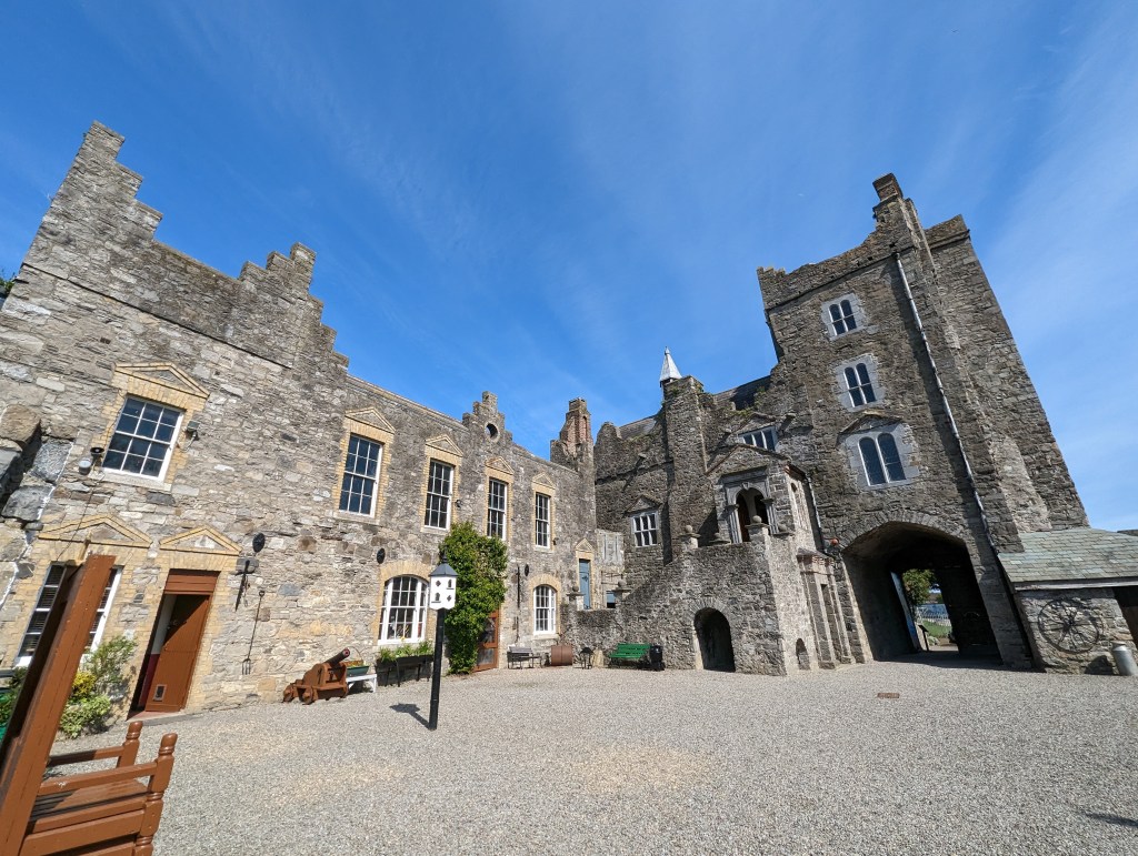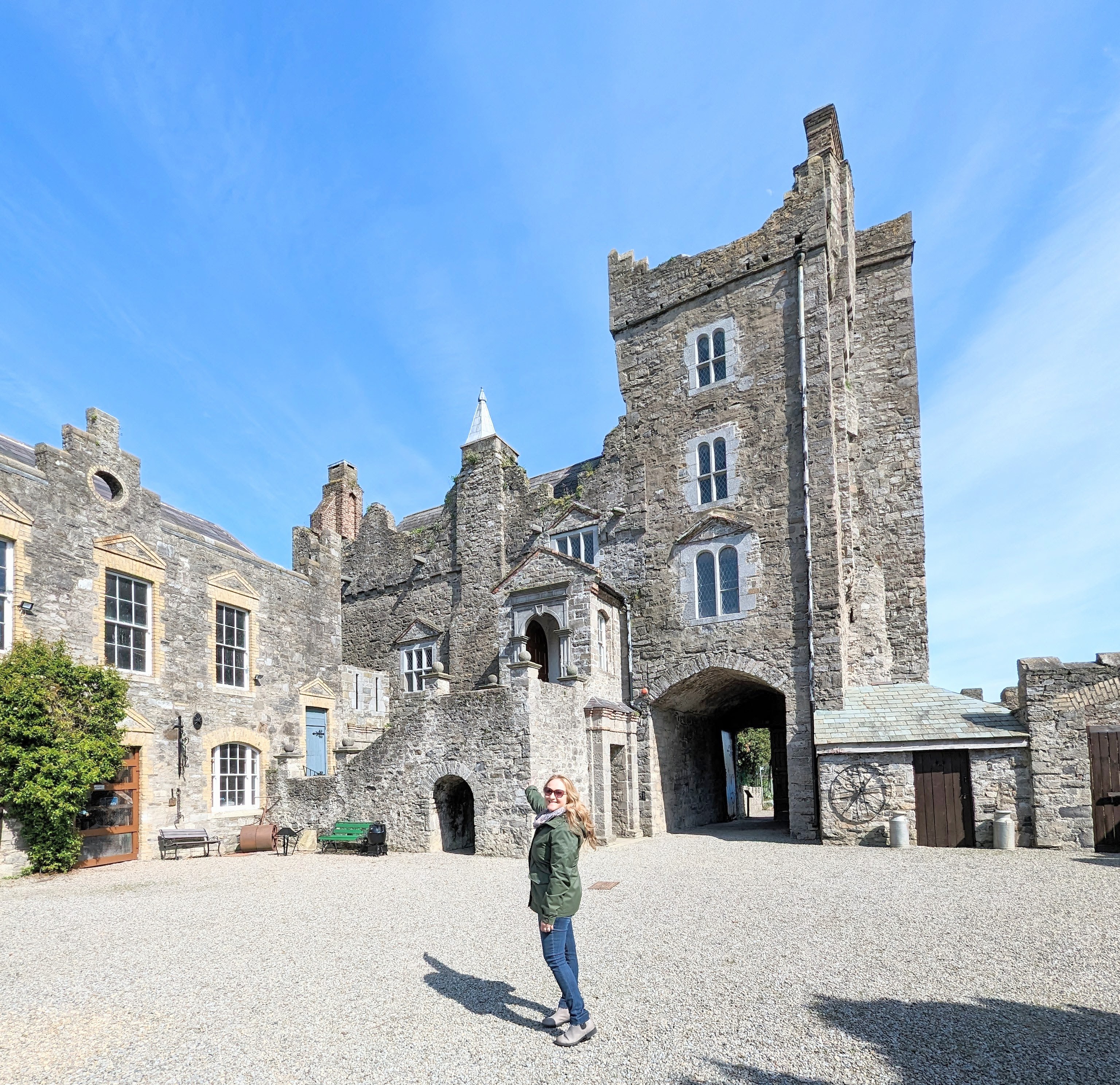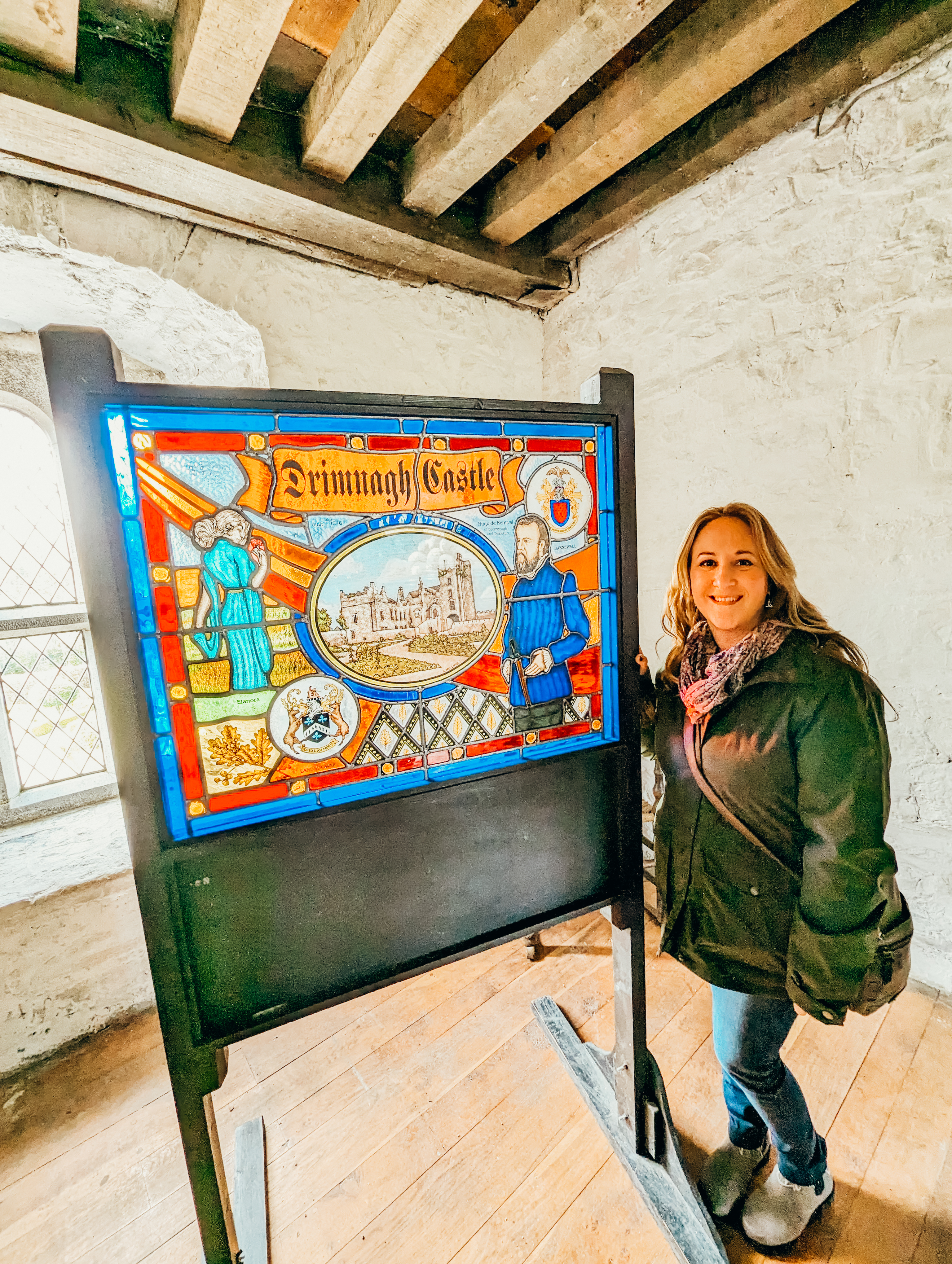 Peach and I had a quick coffee/snack from the cafe and then we were on our way to Drimnagh Castle for our scheduled tour, we had booked prior to arriving in Ireland. It is required to prebook tickets & the cost for entry is 9 euros. Chico was a bit tired so he opted to sit this tour out and waited for us while we took the tour. Drimnagh is a meticulously restored Norman castle dating to the year 1215. It was once the esteemed seat of the de Bernaval family & the castle is now a heritage site. When we arrived we were greeted by a cute little duck family who were enjoying their morning swiming in the moat that surrounds the castle (this is the solely moated castle still standing in Ireland!)