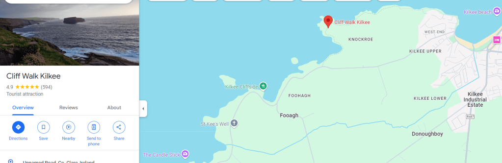 While planning your itinerary determine which direction you will be traveling, sights you want to see along your route and look for gems that are unknown via a quick google maps search. *TIP: Plug an address or city into google maps and then scroll in using the layers tab and search for highlighted areas of interest using the functions in google maps. One of those searches led to the discovery of the Cliff Walk at Kilkee, one of the lesser known cliffs along Ireland’s west coast and an incredible sight to behold. The Cliff Walk offers unique views of the Irish coast, the Atlantic Ocean and tranquility.
