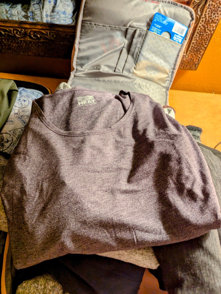 After my preliminary assesment of clothes I organize them into outfits, pairing 1 bottom to 2 tops and a layering piece that can double as a layer for another outfit as well. After organizing outfits I like to arrange them by days and either slip a little sticky note with the date/activity or location that I’ll be wearing the clothes into one of the pockets or inside the neck of the top. On the note I also like to write coordinating pieces that I’ll wear with it (this step helps save time when I arrive at the destination and can simply grab the pieces, slip them on and head out the door 🙂 ) *For a winter trip to the southwest I recommend: packing merinotech base layers & silk base layers, 32 degree puffer or vest, smartwool socks, a packable puffer jacket, warm hat, gloves and rechargeable hand warmers *found on my Amazon storefront along with my other must have items for the perfect getaway in the Southwest. Find at the link below: