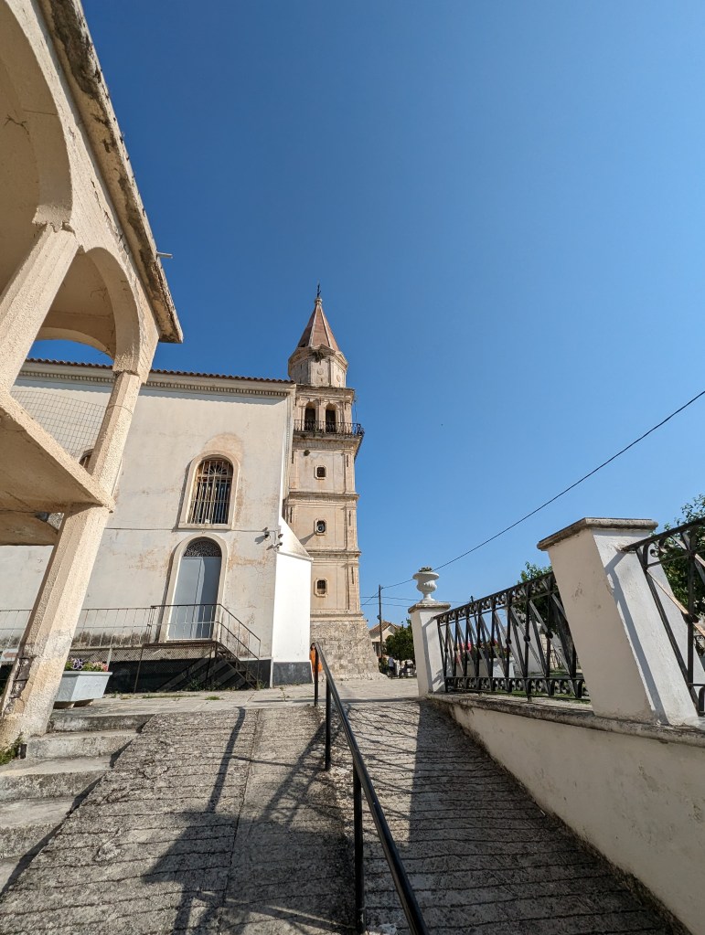Today, it’s impossible to miss thanks to the towering 40-meter Venetian belfry, built in 1802. Its pointed roof rises beside the church like a watchful guardian, casting long shadows and longer stories across the quiet village.