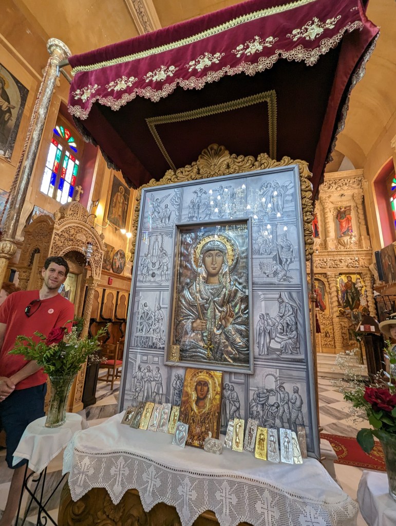 Our first stop of the day took us inland to the village of Maherado, home to one of the most sacred places on the island: Agia Mavra, also known as the Church of the Black Madonna.