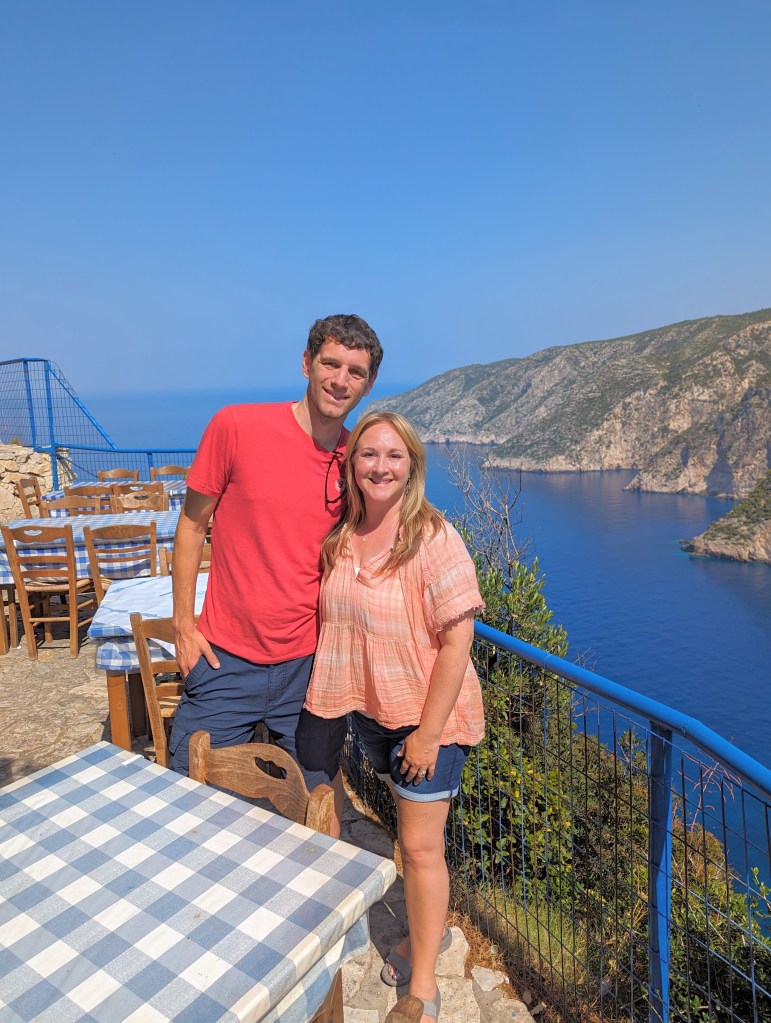 Eventually, we arrived at one of the highlights of the day — Sunset Michalis Taverna, a seasonal cliffside restaurant only open from May to September. At 300 meters above the Ionian Sea, the view from our table was something I’ll never forget: endless blue, warm breeze, and a horizon kissed by sunlight.