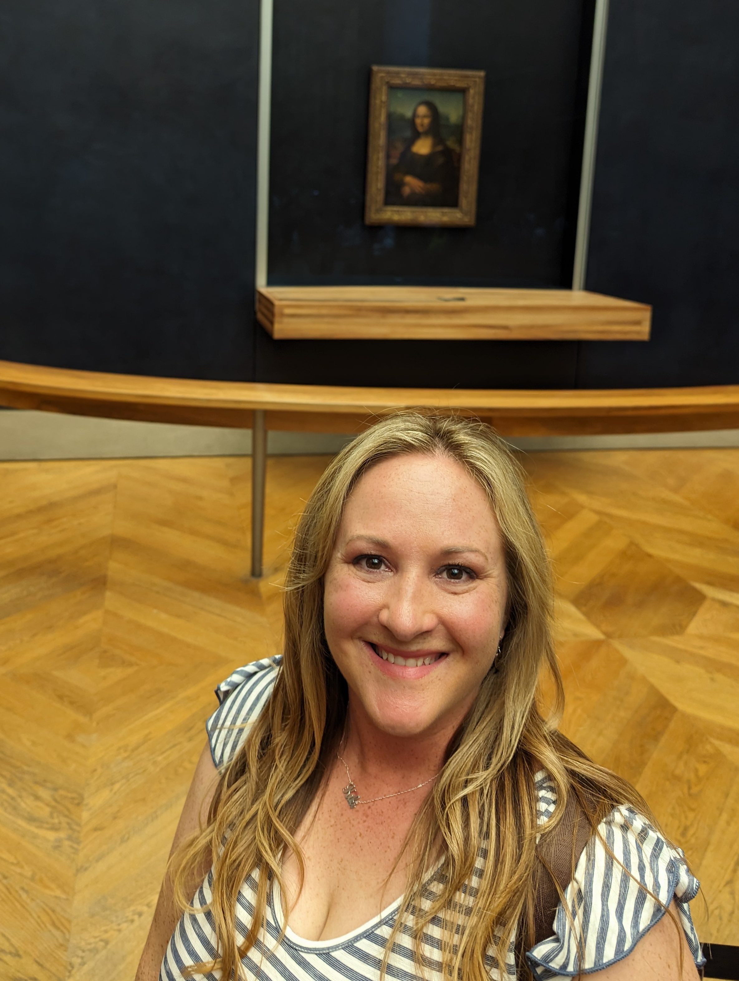 The Louvre is magnificent in every sense — a place where the past and present coexist in golden light and marble halls. One of my favorite stops of the morning was the Galerie d’Apollon — a room so breathtaking it feels like stepping inside a jewel box. Its ceiling is a masterpiece of gilded detail and painted allegories, each panel glowing in soft light. We stood in awe beneath its magnificent painted ceilings, gilded moldings, and intricate details — every inch a masterpiece. The room glowed with light reflected from glass cases displaying France’s Crown Jewels, their sparkle illuminating centuries of royal history. I remember feeling completely enchanted, lost in the opulence and artistry surrounding us. So when I learned about the recent jewel heist — that thieves had managed to steal several priceless pieces from this very gallery — my heart sank. To know that these historic treasures, crafted by master artisans and representing hundreds of years of French heritage, are now lost is deeply saddening. Having admired them up close, I can’t help but feel a profound sense of loss for the history they represented — beauty and craftsmanship that can never truly be replaced.