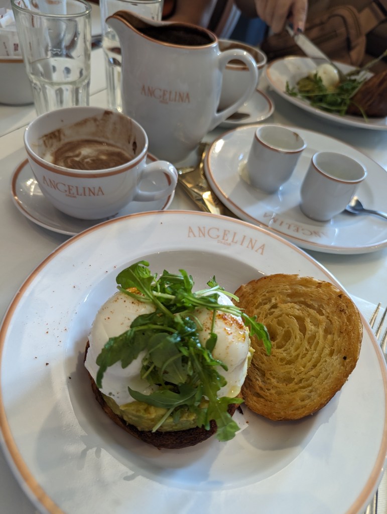 After admiring the Galerie’s splendor, we took a well-earned lunch break at Café Richelieu, Angelina Paris, tucked within the Louvre. It was the perfect spot to pause and reflect on the morning’s wonders. Their famed hot chocolate was rich and velvety, almost like sipping melted chocolate, and the avocado toast served on a warm croissant was divine — flaky, buttery, and utterly Parisian.