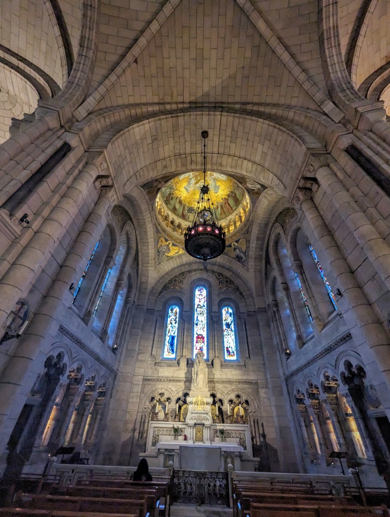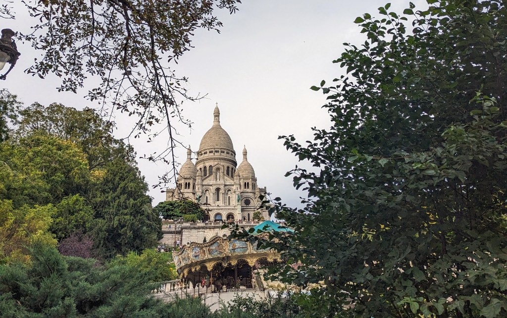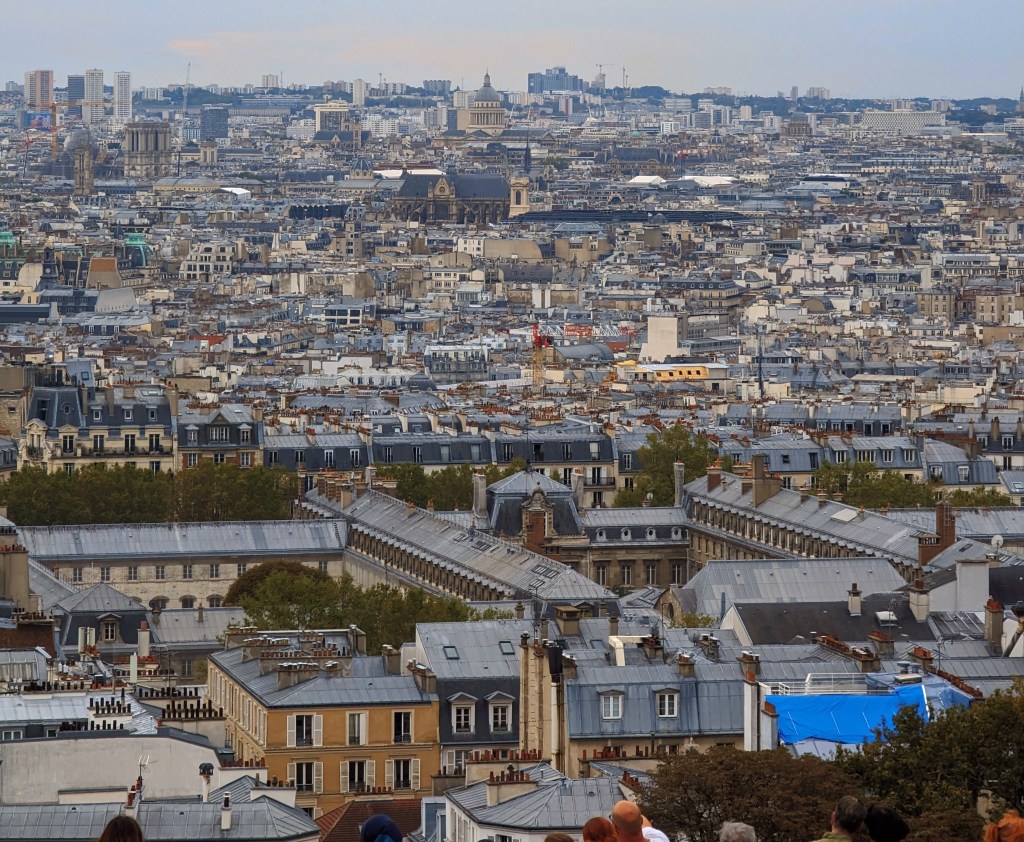 As evening approached, we made our way to Montmartre, the bohemian heart of Paris. The cobblestone streets wound upward toward Sacré-Cœur Basilica, where we watched the sunset cast a rosy glow across the skyline. The view from the top was breathtaking — the Eiffel Tower shimmering faintly in the distance, the rooftops of Paris unfolding endlessly below. Around the square, artists painted portraits and musicians filled the air with song, while cafés glowed with warm, golden light.