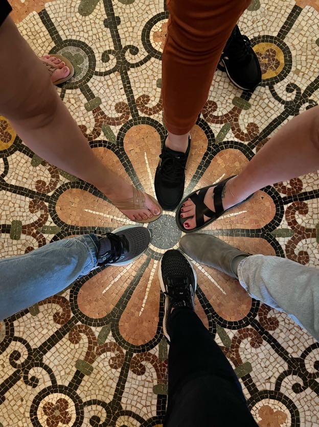 As afternoon turned to golden hour, we made our way to Sainte-Chapelle, nestled on the Île de la Cité near Notre-Dame. The security guards (handsome Gendarmes included 😉) checked our tickets, and after a small mix-up — we discovered our tickets purchased through Travelocity were invalid — we may have shed a few tears at the thought of missing this glorious location, seeing 6 women all upset must have worked some kind of magic because we were allowed in anyway. 💡PRO Tip: Always check the validity of tour tickets etc. We have never run into this issue before or since, however you may not be as forutnate to be allowed entry if it ends up that your tickets are invalid… Best way to avoid this concern is to purchase through reputable companies such as Get Your Guide or directly from the location/activitities website.