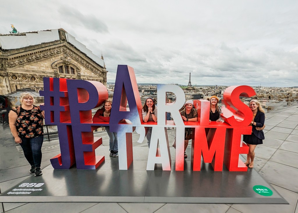 We took eskalators to the free rooftop terrace, which offered one of the most breathtaking panoramic views in all of Paris. The Eiffel Tower rose proudly in the distance, rooftops stretched endlessly, and the city below seemed to hum with life.